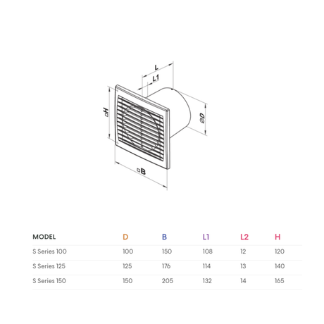 Air Flow 95M³/H | Power 14W | Noise 34 dB(A) | IP34