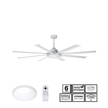 Fantech Atmos DC 8 Blade Ceiling Fan - 1830MM (72" Inch) | White | 8 Speed Remote Control