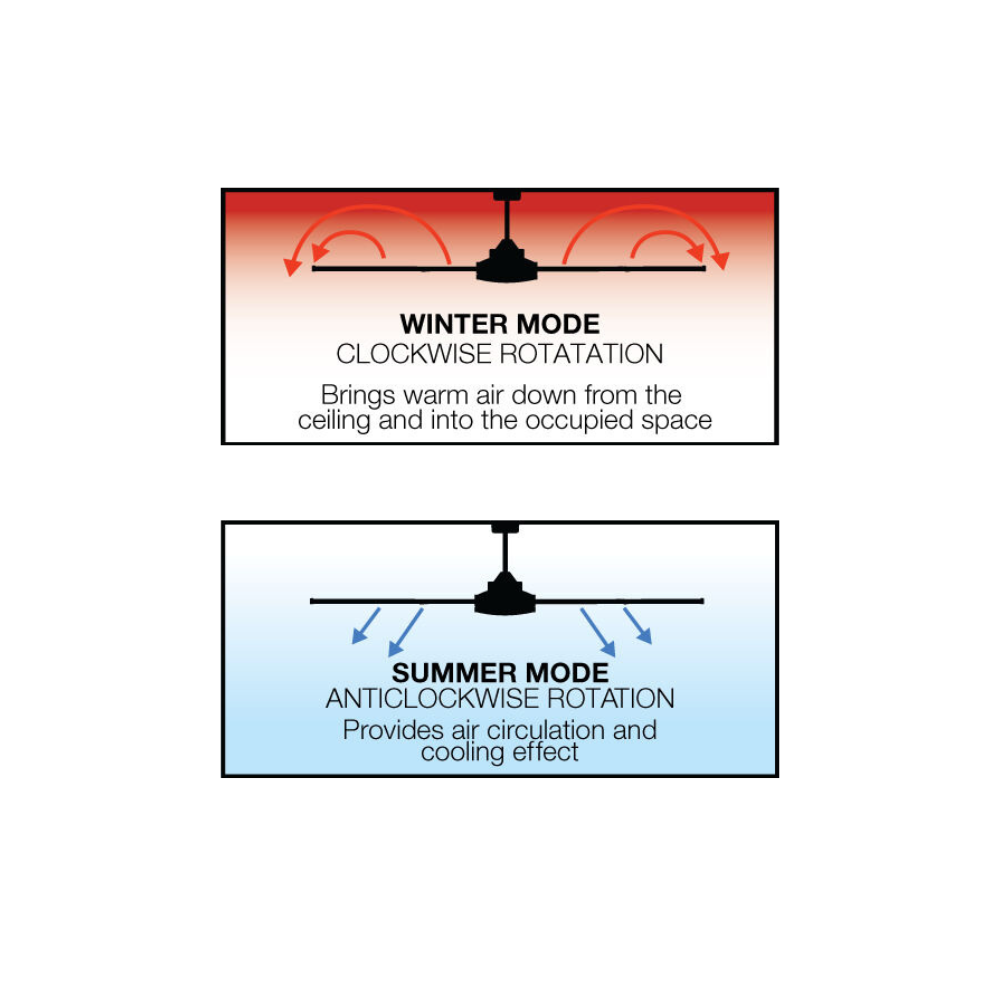 - Reversible Rotation - Summer and winter modes for year round comfort.